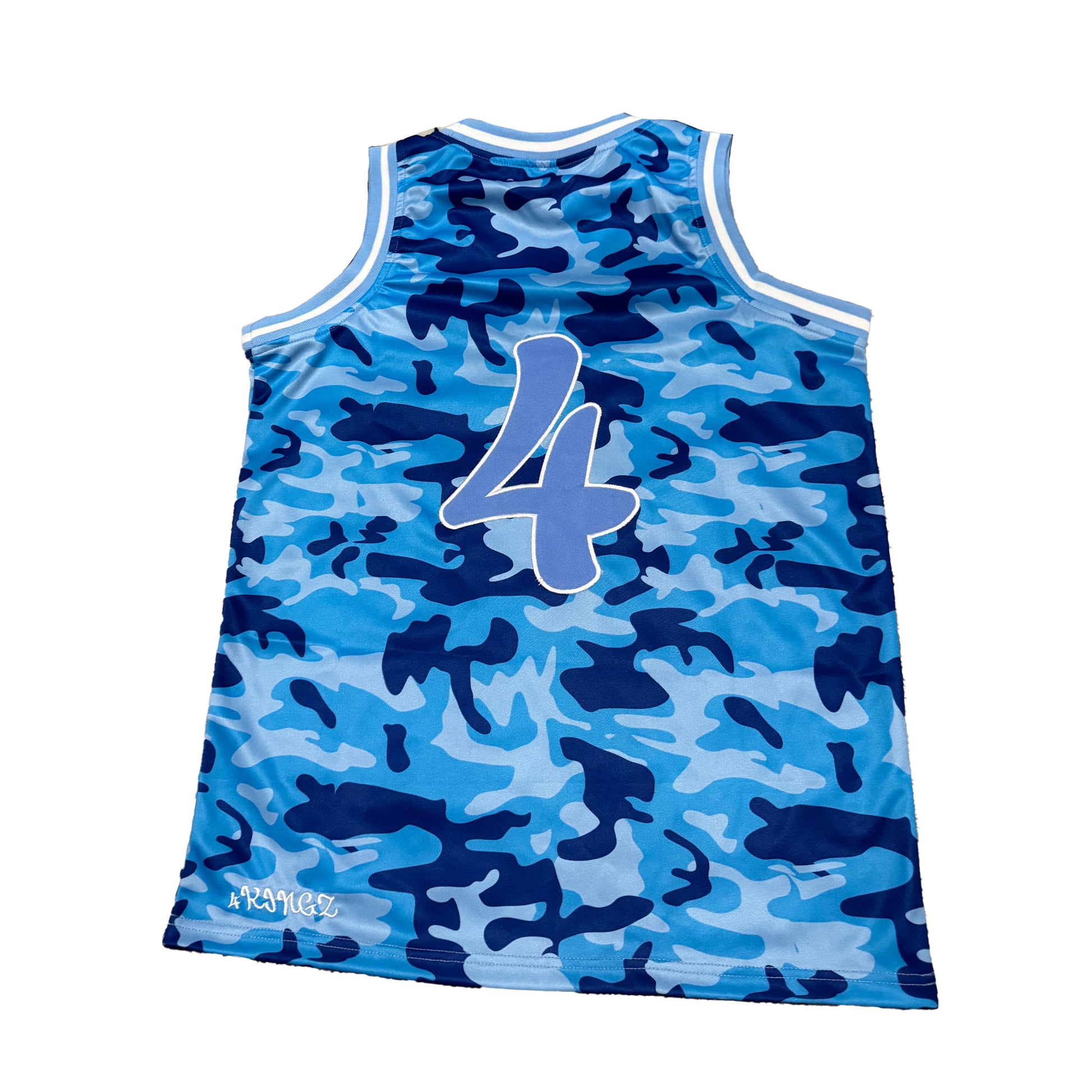This Ski Mask Camo Jersey is built for the ones who move in silence but make noise when it counts. Wrapped in a crisp blue camo and stamped with a bold ski mask graphic, this jersey hits with energy and attitude.